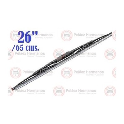 Aplicación: UNIVERSAL 26" / RENAULT Twingo, NISSAN Murano (Lado piloto), PEUGEOT 307/107/206, SUZUKI SX4 (Lado piloto), TOYOTA Camry (Lado piloto), TOYOTA Corolla (Lado piloto), HYUNDAI i25 (Lado piloto), KIA Carens Rondo (Lado piloto), KIA Carnival III, KIA Sedona LX (Lado piloto), CHEVROLET Cobalt (Lado piloto), CHEVROLET Sonic (Lado piloto), FORD Fiesta Nuevo (Lado piloto), MAZDA 5 (Lado piloto), MAZDA CX7/CX9 (Lado piloto), RENAULT scenic II (Lado piloto)