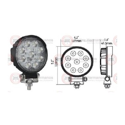 Información Técnica 1: REDONDA, Faro de trabajo ValueFit 5RD, LED 1.0, 9 Leds, Multivoltaje 9 -33 Voltios, CORTO ALCANCE, Consumo de Energía: 13 Vatios