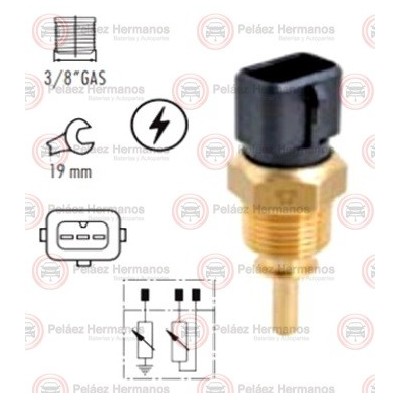 Información Técnica 1: Sensor Temperatura del Refrigerante (Culata). Número de polos: 3 / Rosca Cónica 3/8 x 18